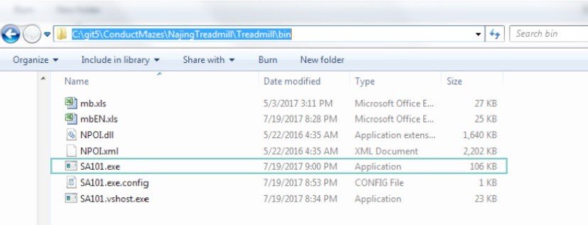 Double click on C:\MazeEngineers\ Treadmill \bin\ SA101.exe