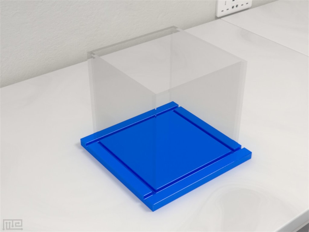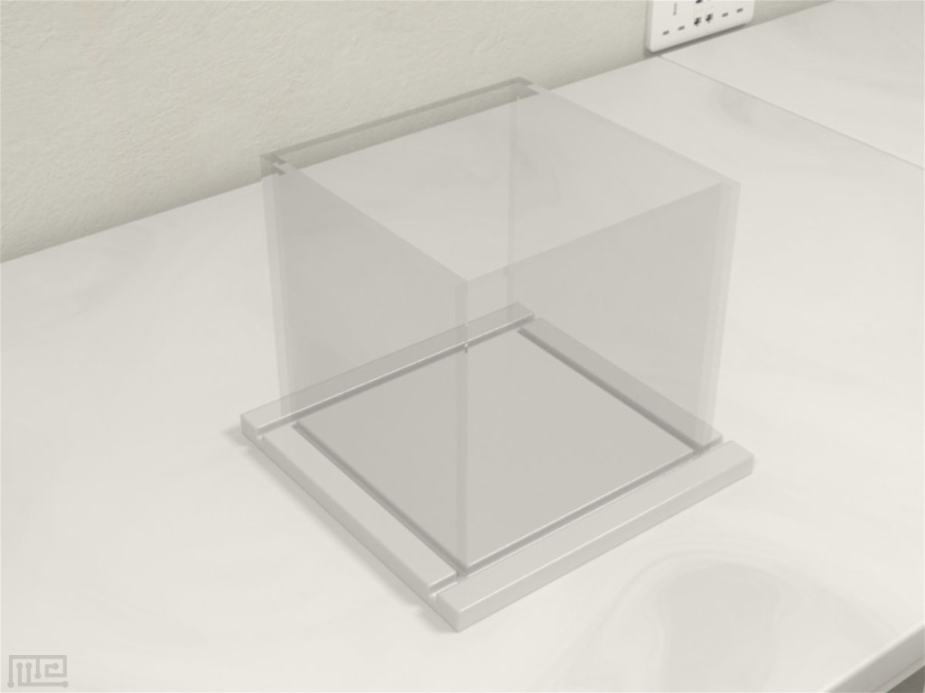 A similar apparatus is utilized for Novel Object Recognition and Open Field tests. This consists of a square area surrounded by high walls. The size of the area varies and depends on the species of animal examined. The walls are typically matte black, white, or clear to prevent reflections. The apparatus may be placed on a table and does not require its own stand.