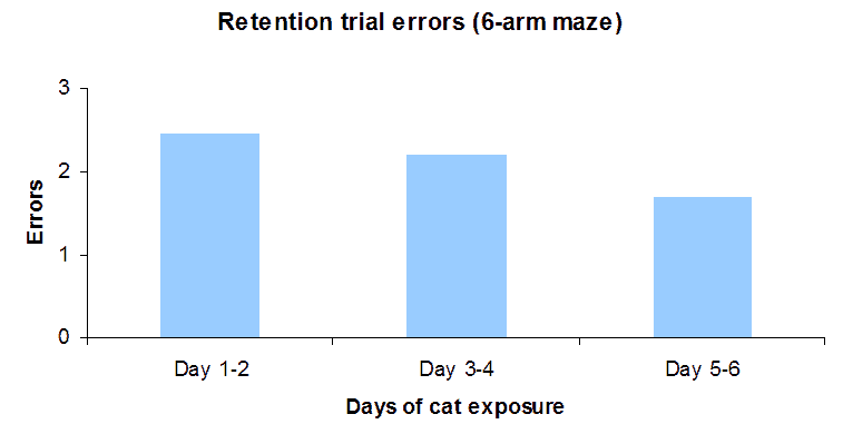 The below graph depicts the sample data of errors committed by the subjects when they are tested on a retention trial after the exposure to a predator (Diamond et al., 1999).