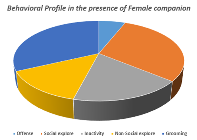 The sample data can be visualized by comparing the behavioral profile in the presence of intruder and female companion. It is evident from the parameters that the male subject is more aggressive in the presence of an intruder.