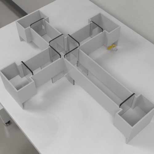 The MazeEngineers Zebrafish T maze allows for choice experiments. Arms are baited with colors or cues and zebrafish are allowed to make choices in experiments. Enrichment boxes can be added to allow for stimuli to drive these choices. Multiple sizing and shapes available. Drain provided upon request alacarte and can be lifted from the ground or table to allow for easy drainage. Please inquire for more details.
